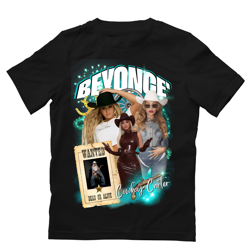 Embrace your inner cowboy and pay homage to the Queen Bey with this stunning Beyoncé "Cowboy Carter" T-shirt. Perfect for fans of Beyoncé who appreciate her diverse style and iconic presence, this tee features a vibrant and dynamic design that captures the essence of her cowboy-themed looks. Whether you're heading to a concert, a casual outing, or simply want to showcase your admiration, this T-shirt is a must-have for every Beyoncé fan.