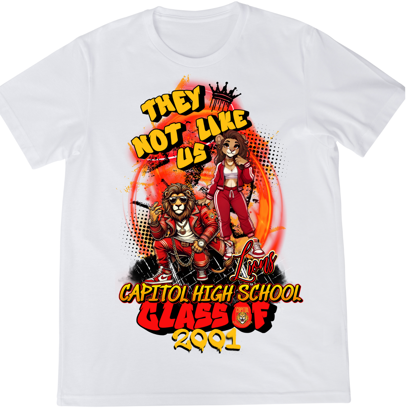 Celebrate your Capitol High School pride with this exclusive "Class of 2001" T-shirt, featuring a bold and vibrant design that embodies the spirit and uniqueness of our class.