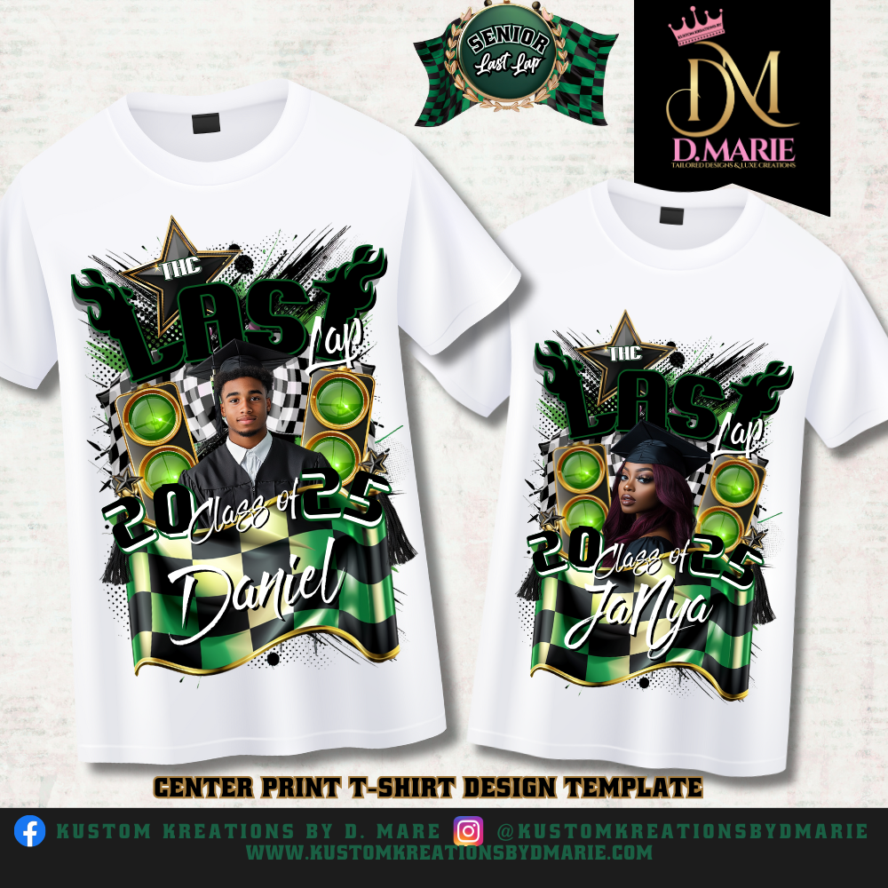 Celebrate graduating seniors with this high-energy, racing-themed CANVA Digital Template! Perfect for designers, print shop owners, and DIY enthusiasts who want to create customized senior graduation apparel and accessories.